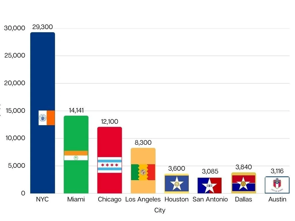 In contrast, NYC, Chicago, LA, and Miami achieve high density in smaller footprints, driving different zoning and multifamily design pressures.
