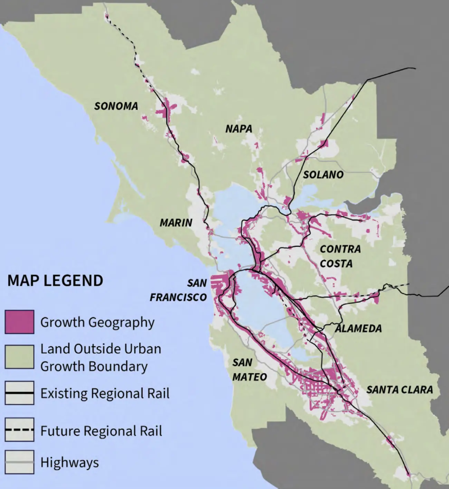 California — AB 130 (2025): CEQA infill exemption California’s 2025 AB 130 creates a targeted CEQA exemption for qualifying urban infill housing projects, substantially reducing environmental-review risk and litigation exposure for certain multifamily developments — a major accelerator for infill in constrained coastal markets. Pay close attention in particular to the provision that allows the Governor to certify projects as "Environmental Leadership Development Projects." This will allow large scale private projects (at least $100 million in construction investment) that align with the CEQA framework to benefit from faster timelines. For example, Plan Bay Area, focuses 95% of new households and over 70% of new jobs into places close to transit and prioritized for future growth. See map below.